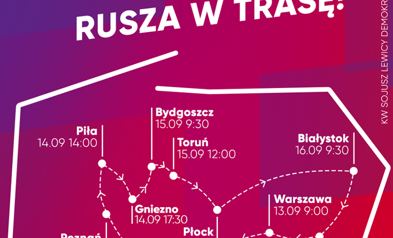 mieli okazję spotkać się z liderami partii Lewicy, którzy przyjechali specjalnym autokarem w barwach kampanii,