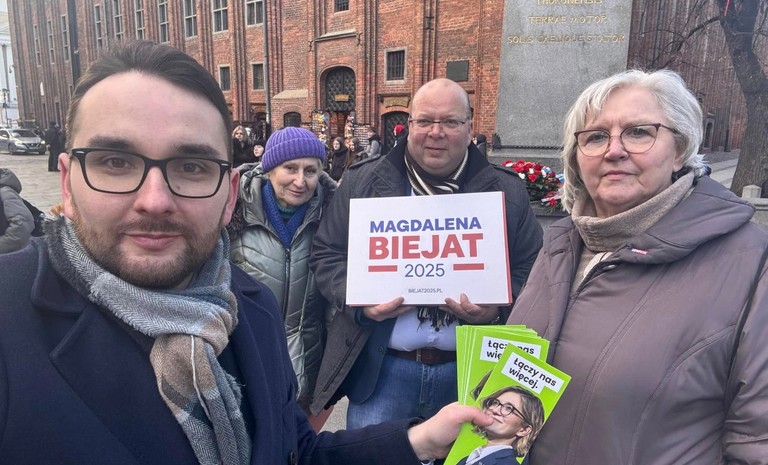 W Toruniu na Starówce działacze Nowej Lewicy zorganizowali konferencję prasową dla regionalnych mediów. Uczestniczący w konferencji poseł lewicy Piotr Kowal zachęcał do głosowania na Magdalenę Biejat, obecną wicemarszałkinię Senatu RP.