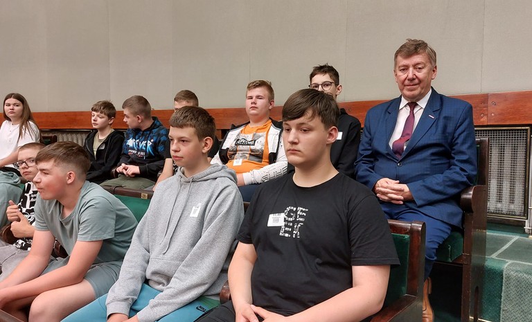 Poseł Jan Szopiński zapraszał do zwiedzania siedziby parlamentu już wiele grup z województwa kujawsko-pomorskiego. Tym razem – 13 czerwca, w czasie 77. posiedzenia Izby do stolicy przyjechali uczniowie Zespołu Szkół im. Mariana Rejewskiego z Ostromecka w powiecie bydgoskim.